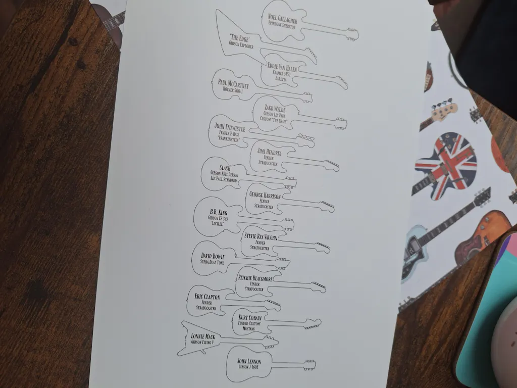 Little card added inside with names of famous players and which of the guitars they played really sweet little touch. Would definitely recommend.